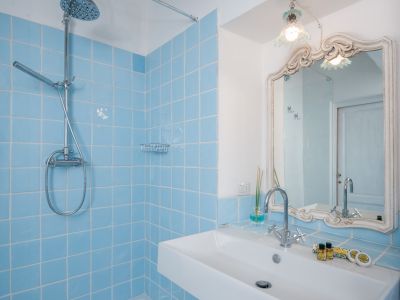 We got permission from the government to create modern en suite bathrooms, tiled with glazed terracotta produced in this area. Terracotta, so typical of Tuscany, is the material of the old bricks we have found in the house and reused to pave the rooms.