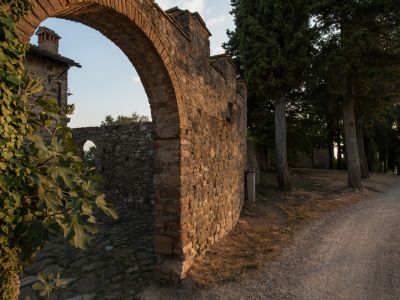 During the 15th century it became a village of peasants and was abandoned in the Sixties. Our father discovered the magic of the place and was spellbound by the spectacular view he saw from the top of the hill. The building was very decayed, but its walls, doorways, arched windows, every detail of the medieval architecture survived and has been brought back to life with a careful restoration under the control of the government as the whole tiny village of Poggio a Vento is on the Italian monument list.