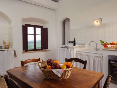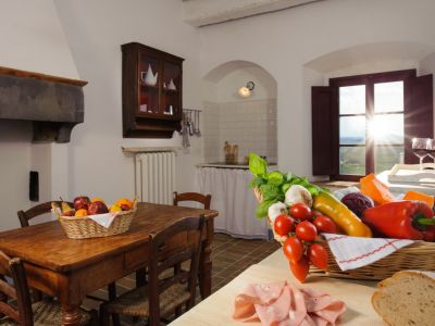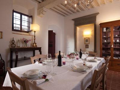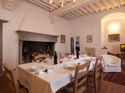 The monks of the Middle Ages used our dining room in the past: the large room, where we placed a sitting corner, has fireplace, doorway and washbasin with decorations in 'pietra serena', the stone used in Florence and surroundings since the Renaissance: they washed their hands for hygienic and rituals reasons before lunch and dinner.