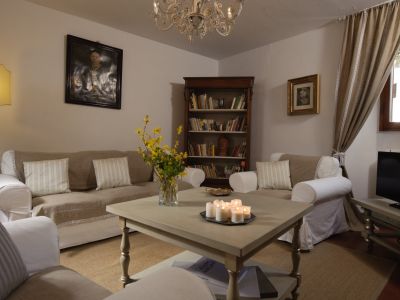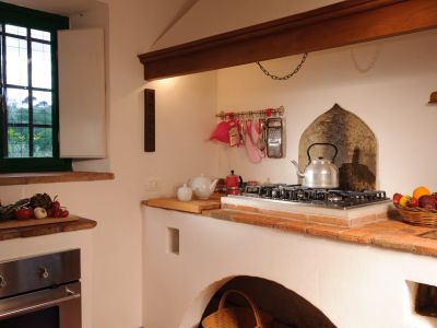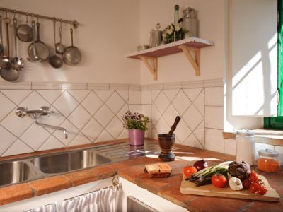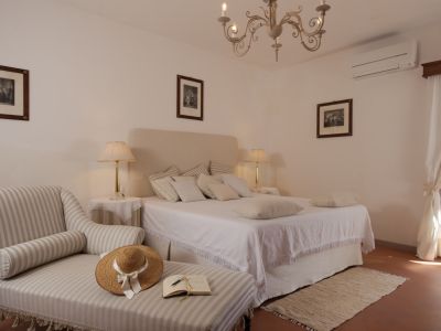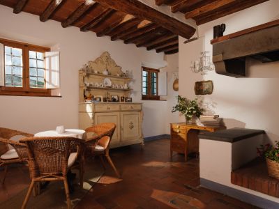 The rooms still have the old Tuscan furniture they bought from the farmers of the surroundings who were moving to town in the Sixties, abandoning the fields. Furinture with beautiful Renaissance motives carefully carved out wood inherited from an old aunt, decorates the master bedroom, with en suite bathroom.