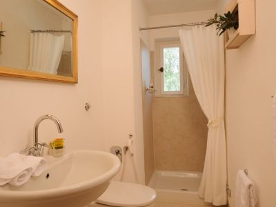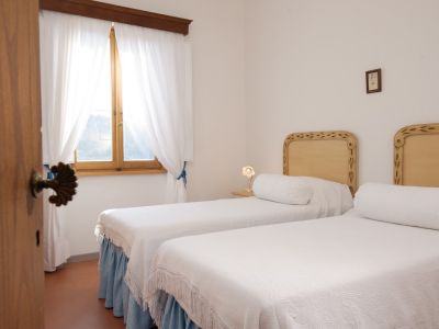 An ancient wrought iron bed was placed in a large bedroom, where the late 19th century wardrobe comes from family heritage. In this part of the house you will find a large bathroom, with a shower and an old bath tub, from which you can enjoy the view of the hill in front lying in foam bubbles.